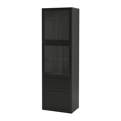 storage combination w doors/drawers, black-brown Lappviken/Sindvik/Stubbarp black-brown clear glass, 120x42x240 cm