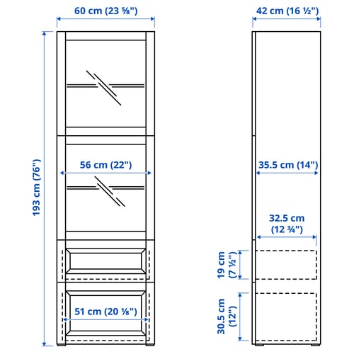 designerIKEA of Sweden- Product dimensionsWidth60 cmDepth42 cmHeight193 cmPackaging infoThis product comes as 15 packagesBESTÅframe802.483.75Height8 cmLength196 cmNet weight18.59 kgVolume63.9 lWeight20.56 kgWidth41 cmpackage quantity1BESTÅglass shelf402.955.33Height1 cmLength57 cmNet weight1.96 kgVolume1.0 lWeight2.05 kgWidth36 cmpackage quantity3BESTÅshelf503.526.84Height2 cmLength59 cmNet weight2.46 kgVolume3.7 lWeight2.50 kgWidth36 cmpackage quantity1BESTÅdrawer frame103.513.61Height4 cmLength64 cmNet weight3.72 kgVolume8.7 lWeight4.02 kgWidth34 cmpackage quantity1BESTÅdrawer frame703.513.58Height5 cmLength54 cmNet weight2.69 kgVolume9.8 lWeight2.98 kgWidth35 cmpackage quantity1BESTÅdrawer runner, soft-closing203.487.16Height5 cmLength38 cmNet weight0.95 kgVolume1.1 lWeight1.01 kgWidth5 cmpackage quantity2BESTÅsoft closing/push-open hinge602.612.59Height3 cmLength25 cmNet weight0.25 kgVolume1.3 lWeight0.26 kgWidth20 cmpackage quantity2LAPPVIKENdoor/drawer front702.954.66Height2 cmLength66 cmNet weight2.51 kgVolume5.1 lWeight2.85 kgWidth39 cmpackage quantity1SINDVIKglass door902.963.18Height2 cmLength70 cmNet weight3.66 kgVolume9.3 lWeight4.17 kgWidth60 cmpackage quantity2LAPPVIKENdrawer front902.954.65Height2 cmLength66 cmNet weight1.72 kgVolume3.4 lWeight1.95 kgWidth26 cmpackage quantity1