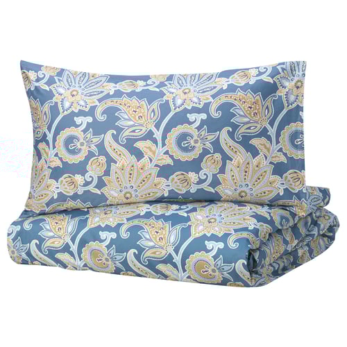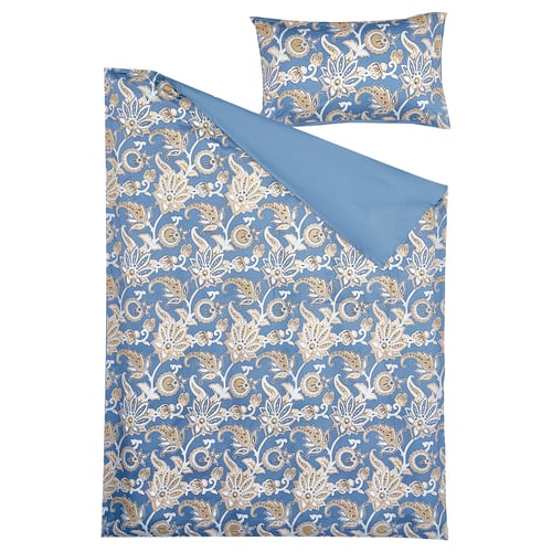 duvet cover and pillowcase, blue/beige, 150x200/50x80 cm