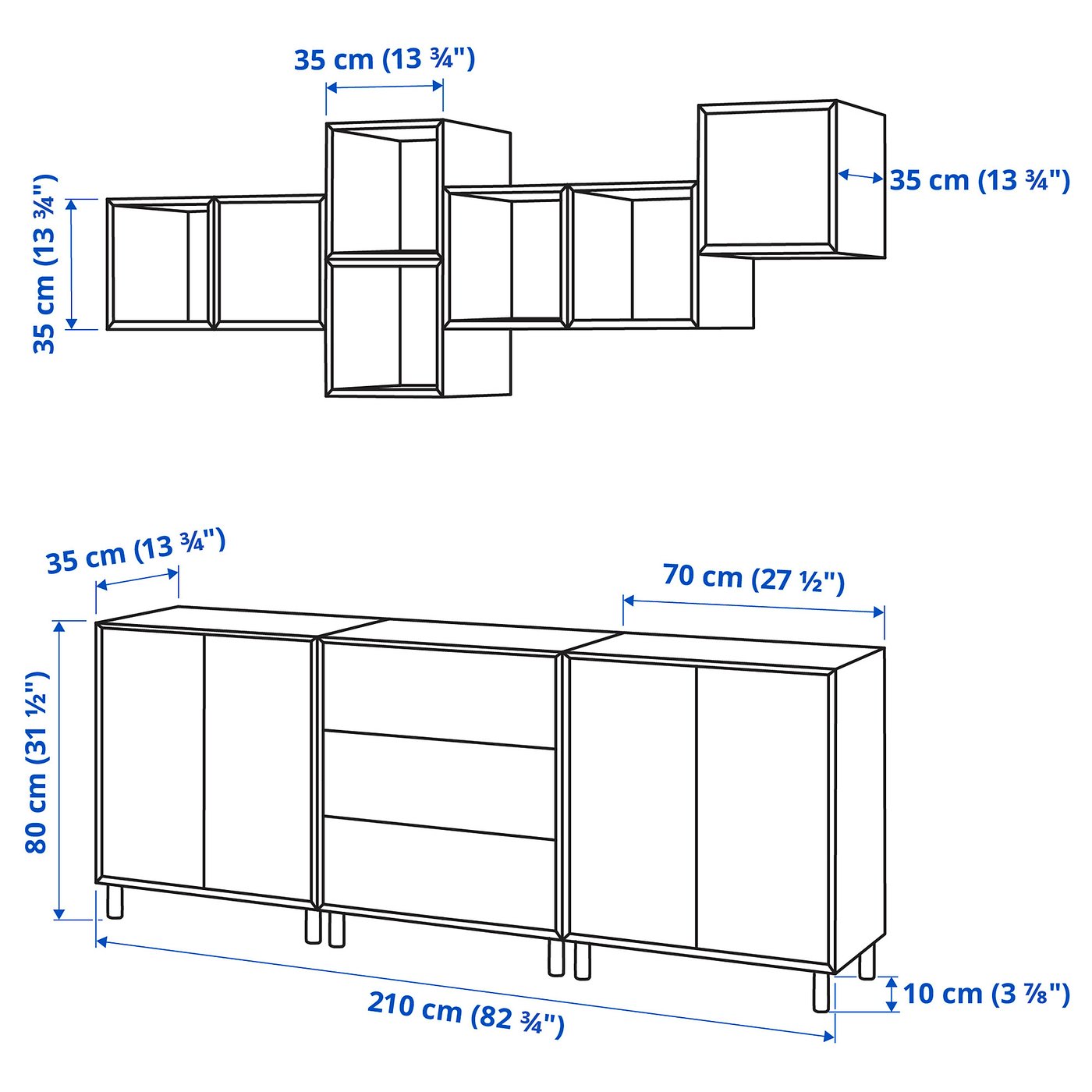 designerIKEA of Sweden- Product dimensionsWidth210 cmDepth35 cmHeight210 cmPackaging infoThis product comes as 20 packagesEKETcabinet w 2 doors and 1 shelf803.339.53Height13 cmLength76 cmNet weight15.55 kgVolume35.8 lWeight16.28 kgWidth36 cmpackage quantity2EKETcabinet with 3 drawers003.339.71Height15 cmLength85 cmNet weight22.69 kgVolume52.3 lWeight24.00 kgWidth41 cmpackage quantity1EKETcabinet with door503.321.15Height10 cmLength41 cmNet weight4.70 kgVolume14.0 lWeight5.08 kgWidth36 cmpackage quantity2EKETcabinet303.345.92Height8 cmLength41 cmNet weight3.52 kgVolume11.5 lWeight3.84 kgWidth36 cmpackage quantity1EKETcabinet003.345.98Height8 cmLength41 cmNet weight3.73 kgVolume11.8 lWeight4.10 kgWidth36 cmpackage quantity1EKETcabinet603.346.04Height8 cmLength41 cmNet weight3.52 kgVolume11.5 lWeight3.84 kgWidth36 cmpackage quantity3EKETleg604.741.52Height10 cmLength11 cmNet weight0.55 kgVolume1.0 lWeight0.60 kgWidth10 cmpackage quantity3EKETsuspension rail603.400.49Height3 cmLength33 cmNet weight0.26 kgVolume0.9 lWeight0.32 kgWidth9 cmpackage quantity7