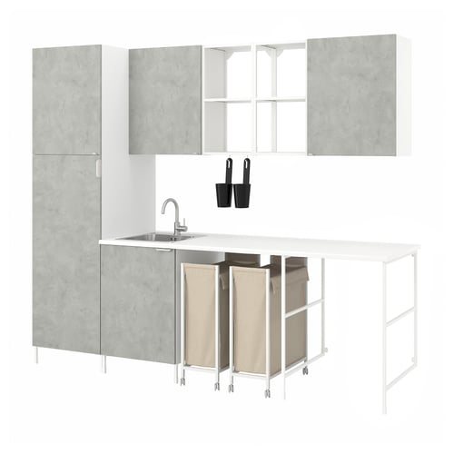 laundry, white/concrete effect, 261.5x63.5x222.5 cm