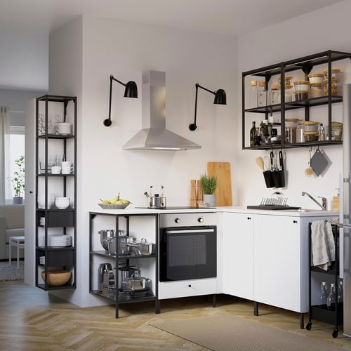 ENHET hanging shelf insert helps create more storage space between the shelves in the open ENHET frames. Perfect for organising things like espresso cups, jars, hairdryer or towels.