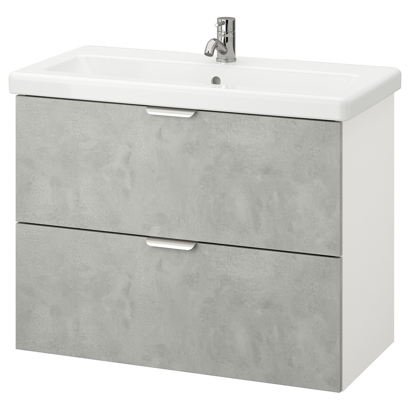 wash-stand with 2 drawers, concrete effect/white Pilkån tap, 84x43x65 cm