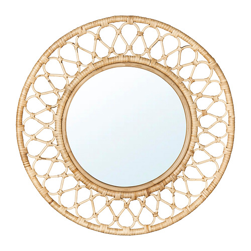 You can place FÄRGEK mirrors on the wall in many ways – on their own or together with other wall decorations.