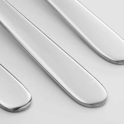- All cutleries need some care to maintain their original finish. Rinse cutlery after use to remove any scraps of food, even if you plan to wash up later. If you use a dishwasher, choose a shorter cycle and dry the cutlery by hand. That way you avoid rust spots caused by food that sticks to the cutlery, or by leaving cutlery too long in the hot, humid air inside the machine. Good advice doesn't have to be expensive.Use your hands and eyes to help you decide which cutlery to choose. Do you like the shape and finish? Does it feel good in your hand? The more material there is in the cutlery, the better it usually feels to hold. But, the amount of material and the production process also have the biggest effect on the price. Follow your instincts - only you know which cutlery feels best.Stainless steel is found in everything from building structures and cars to sinks and knives. It’s easy to see why it has so many uses. Stainless steel is hard and durable and has good resistance to corrosion – namely rust. It generally has a low nickel content, and for IKEA products we mainly use stainless steel that’s nickel-free. Like many other metals, it can be recycled again and again to become new, hardwearing things – without losing its valuable properties.