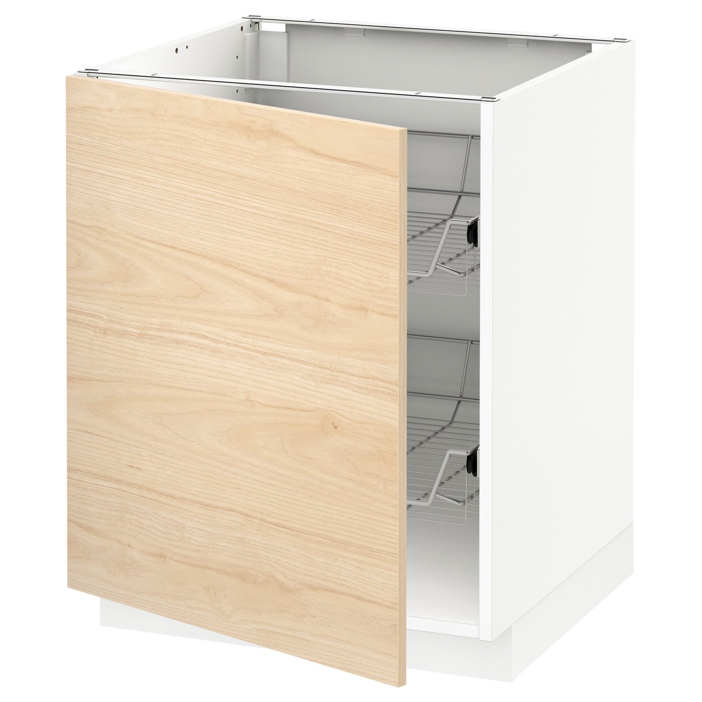 base cabinet with wire baskets, white/Askersund light ash effect, 60x60x70 cm