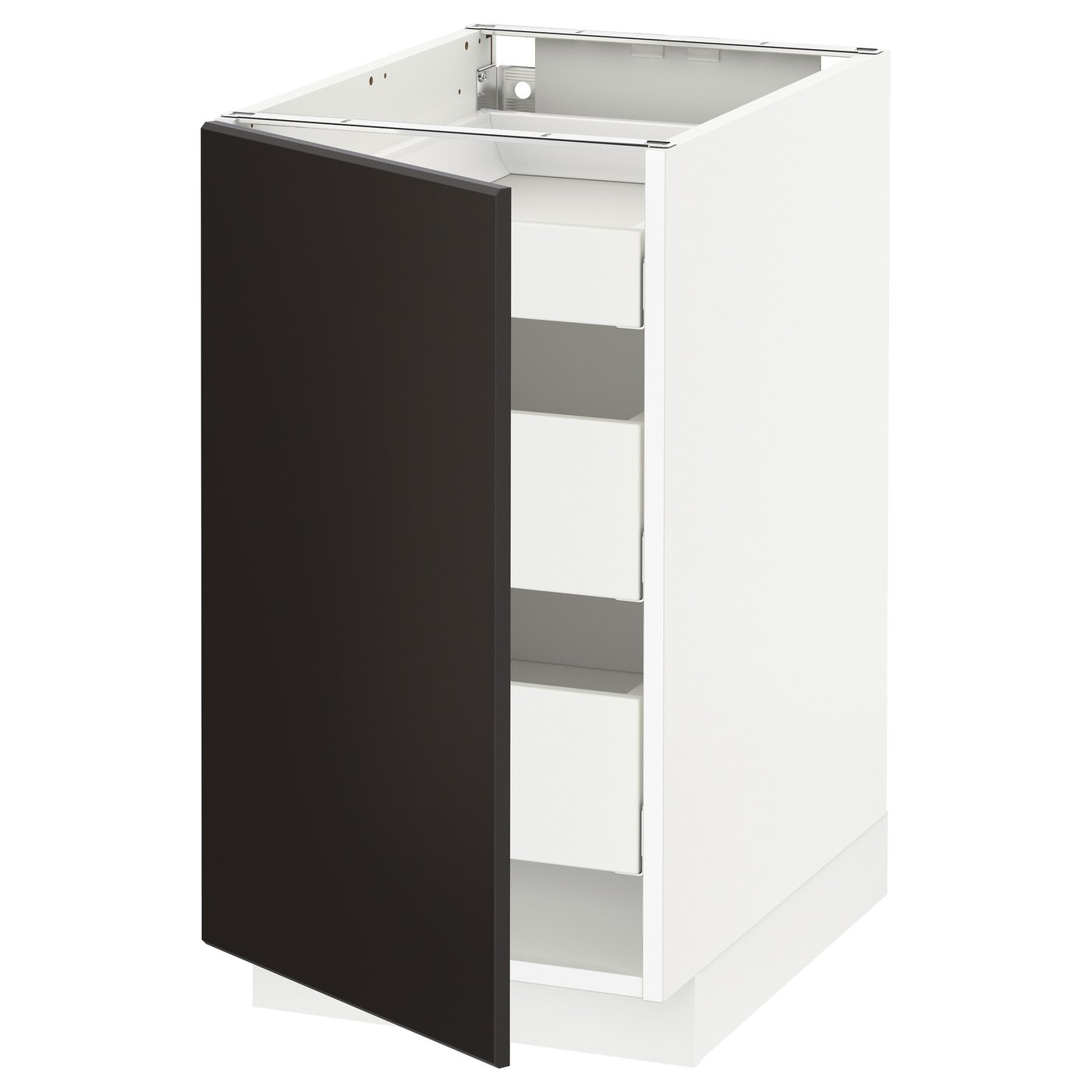 designerIKEA of Sweden- Product dimensionsWidth40 cmSystem, depth60 cmDepth61.8 cmFrame, height70 cmPackaging infoThis product comes as 9 packagesKUNGSBACKAdoor303.378.64Height2 cmLength79 cmNet weight3.45 kgVolume6.7 lWeight3.85 kgWidth40 cmpackage quantity1METODbase cabinet frame802.708.99Height7 cmLength78 cmNet weight14.62 kgVolume30.9 lWeight15.47 kgWidth61 cmpackage quantity1MAXIMERAdrawer, medium702.711.11Height8 cmLength57 cmNet weight5.24 kgVolume13.1 lWeight5.72 kgWidth30 cmpackage quantity2MAXIMERAdrawer, low202.711.04Height8 cmLength57 cmNet weight4.81 kgVolume13.1 lWeight5.23 kgWidth30 cmpackage quantity1UTRUSTAdrawer front, low302.711.70Height2 cmLength37 cmNet weight0.31 kgVolume0.5 lWeight0.35 kgWidth8 cmpackage quantity1UTRUSTAdrawer front, medium702.711.73Height2 cmLength37 cmNet weight0.57 kgVolume0.9 lWeight0.62 kgWidth15 cmpackage quantity2UTRUSTAhinge w b-in damper for kitchen704.272.64Height6 cmLength26 cmNet weight0.42 kgVolume3.5 lWeight0.43 kgWidth22 cmpackage quantity1