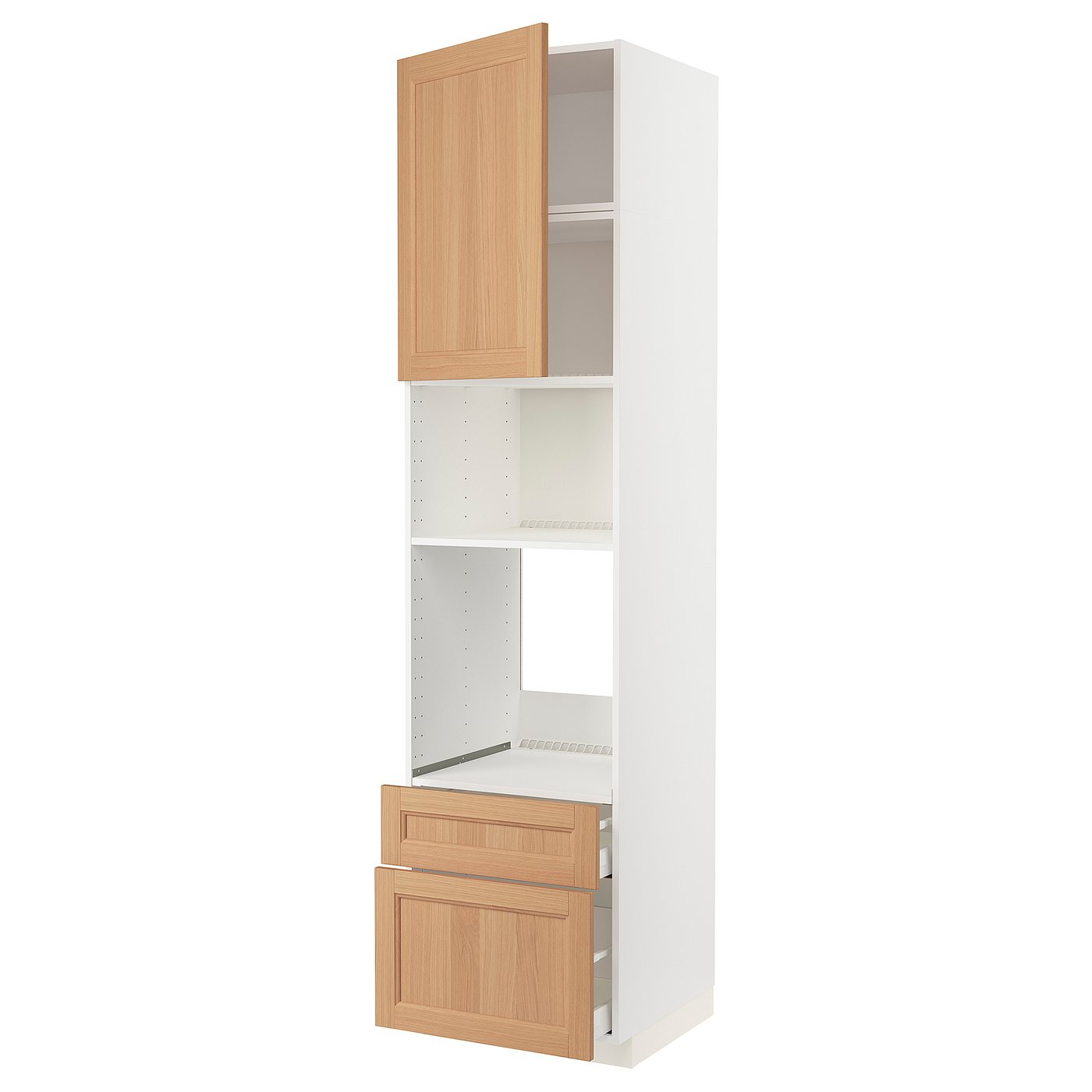 high cab f oven/micro w dr/2 drwrs, white/Vedhamn oak, 60x60x240 cm
