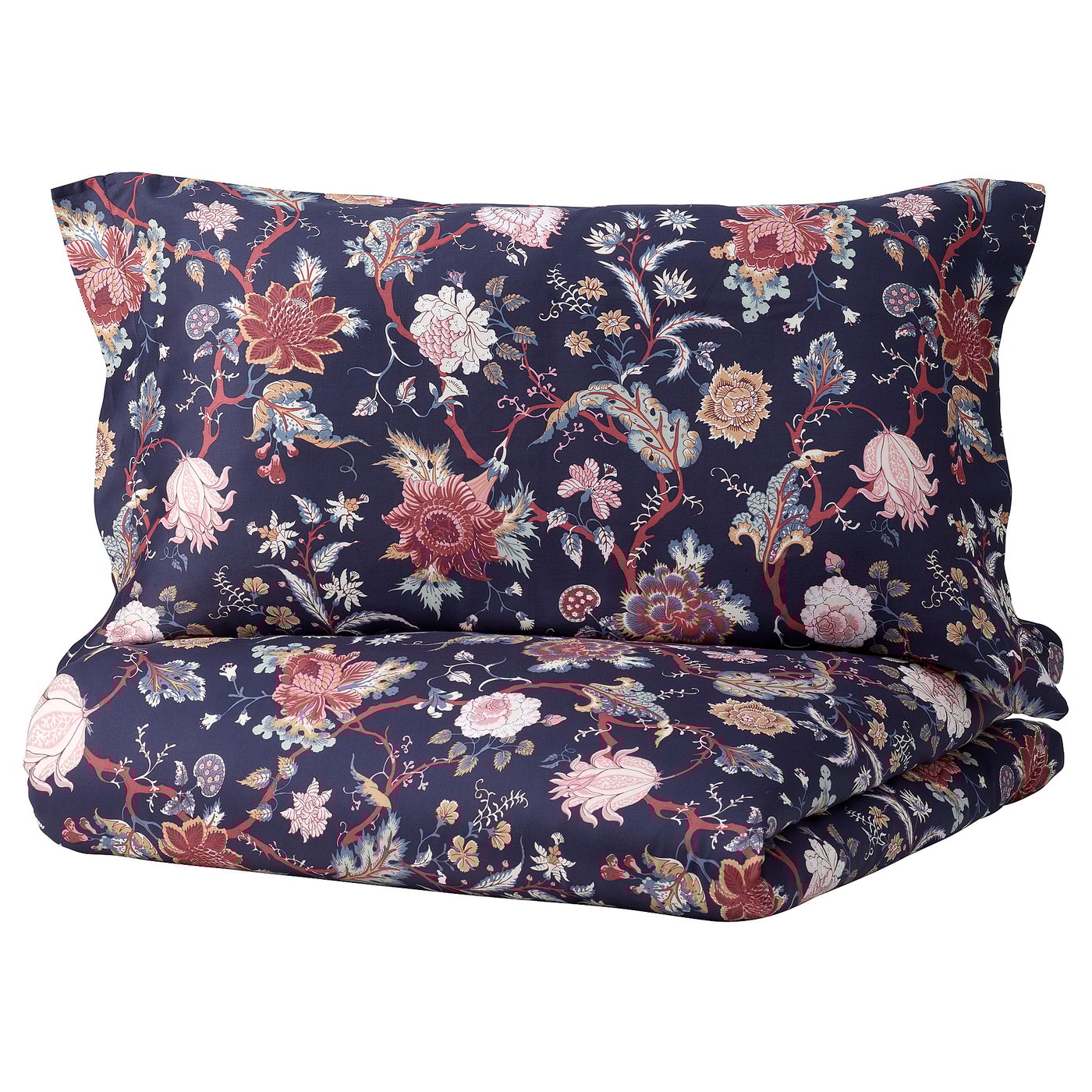 duvet cover and pillowcase, dark blue/multicolour, 150x200/50x80 cm