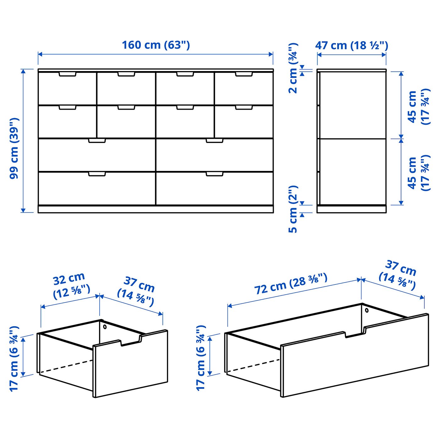 designerOla Wihlborg- Product dimensionsWidth160 cmDepth47 cmHeight99 cmDepth of drawer (inside)37 cmPackaging infoThis product comes as 7 packagesNORDLItop and plinth103.834.80Height8 cmLength170 cmNet weight20.83 kgVolume61.2 lWeight22.08 kgWidth48 cmpackage quantity1NORDLImodular chest of 2 drawers803.556.57Height9 cmLength75 cmNet weight15.65 kgVolume31.7 lWeight16.57 kgWidth46 cmpackage quantity4NORDLImodular chest of 2 drawers403.556.59Height9 cmLength94 cmNet weight21.54 kgVolume39.4 lWeight22.60 kgWidth46 cmpackage quantity2