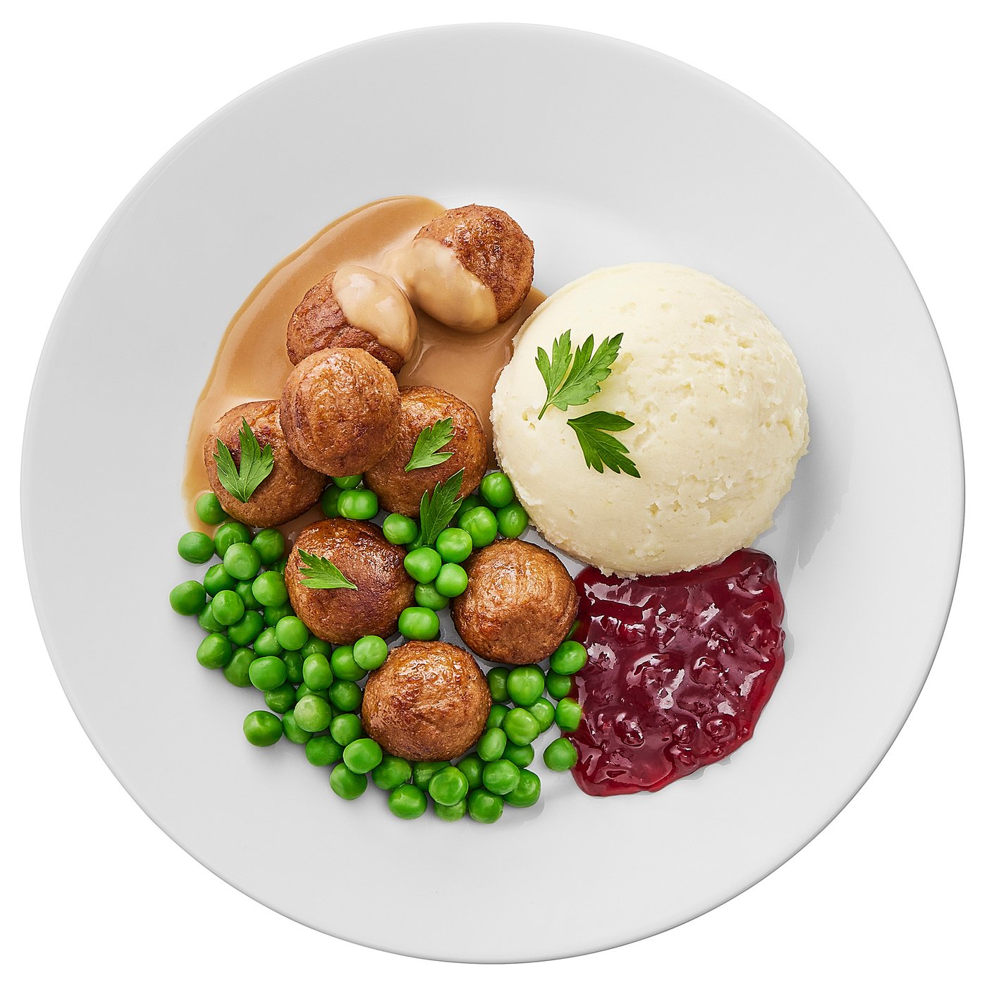 plant balls, mashed potatoes green peas/cream sauce and lingonberry jam 8 piece