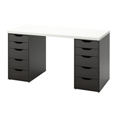 - Care instructionsWipe clean with a cloth dampened in a mild cleaner.Wipe dry with a clean cloth.For increased stability, re-tighten the screws about two weeks after assembly and when necessary.Environment and materialsTable top:Honeycomb structure paper filling (min. 70% recycled), Particleboard, Fibreboard, Acrylic paint, Paper foilSide panel/ Shelf:Particleboard, Acrylic paint, Plastic edgingFront rail/ Back rail/ Drawer side/ Drawer back:Particleboard, Paper foilBack panel:Particleboard, Acrylic paintPlinth/ Drawer front:Fibreboard, Acrylic paintDrawer bottom:Fibreboard, Printed acrylic paintCable organiser:Fibreboard, Fibreboard, Acrylic paint