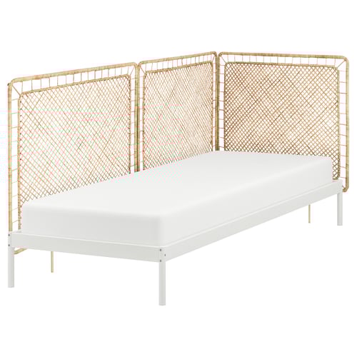 bed frame with 3 headboards, white/Tolkning rattan, 90x200 cm