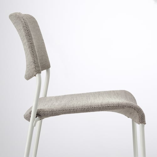 耐用的双色椅子面料手感柔软,看上去令人心情愉悦,覆盖座椅和靠背的圆润钢制边缘。