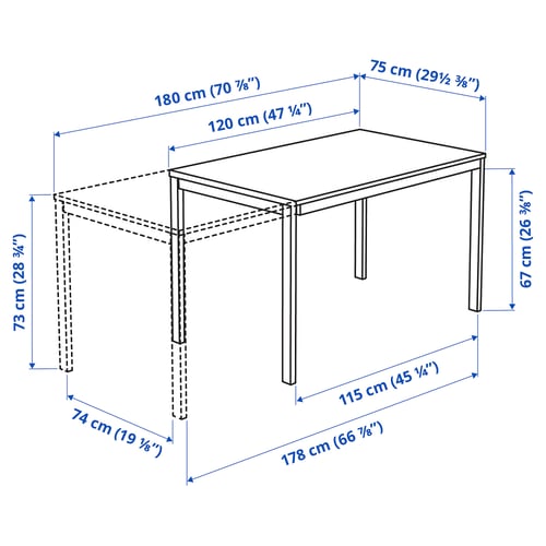 - 商品尺寸桌子长度不小于120 厘米桌子长度不超过180 厘米高度73 厘米宽度75 厘米包装信息此商品包含6个包装VANGSTA 望斯塔伸缩型餐桌904.201.53高度5 厘米长度123 厘米净重17.32 公斤容量45.4 公升重量18.60 公斤宽度77 厘米包装数量1高度6 厘米长度116 厘米净重13.55 公斤容量19.4 公升重量14.78 公斤宽度29 厘米包装数量1TEODORES 帝奥多斯椅子005.306.22高度7 厘米长度78 厘米净重4.72 公斤容量24.6 公升重量5.27 公斤宽度45 厘米包装数量4