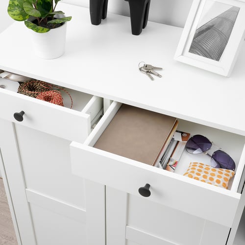抽屉和带有可调式搁板的开放式储物间——是用来放置鞋子、袋子和配饰的理想之选。